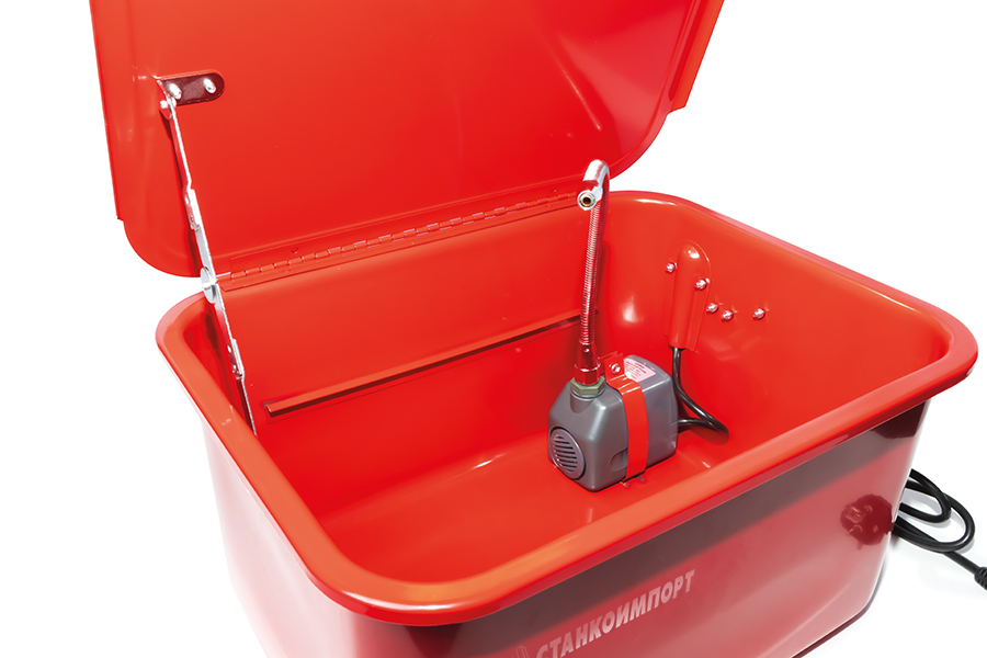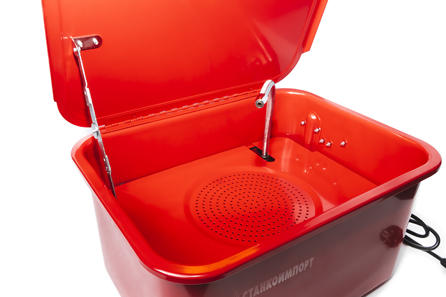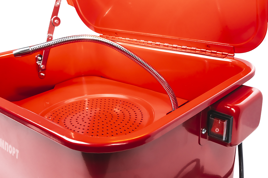 Мойка деталей используется в автомастерских, производственных цехах и на станциях технического обслуживания. Ванночка объемом 19 литров и гофрированный металлорукав для направленной подачи струи очищающего раствора обеспечивают удобство эксплуатации. Специальное покрытие защищает оборудование от влияния коррозии в течение всего срока службы. Для корректной работы устройства необходимо использовать моющие средства на основе воды. Не использовать агрессивные растворители!