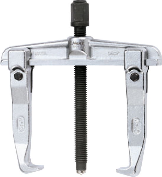 Универсальный съемник с двумя захватами «американского типа»  является одним из наиболее простых и в то же время, удобных в применении типов съемников. Захваты свободно перемещаются по направляющим траверсы, сохраняя одинаковую площадь пятна контакта лапок с демонтируемой деталью. При нагрузке захваты заклиниваются на направляющих, что предотвращает соскальзывание лапки с демонтируемой детали. Съемник также можно использовать для внутреннего захвата детали. Захваты изготовлены из хромованадиевой стали путем ковки. Ходовой винт изготовлен из хромомолибденовой стали.