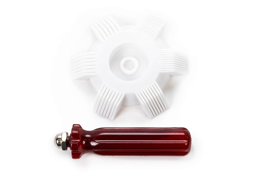 Данное приспособление изготовлено из высокопрочного капролона, применение данного материала обеспечивает долгий срок службы и сводит к минимуму вероятность повреждения сот радиатора.