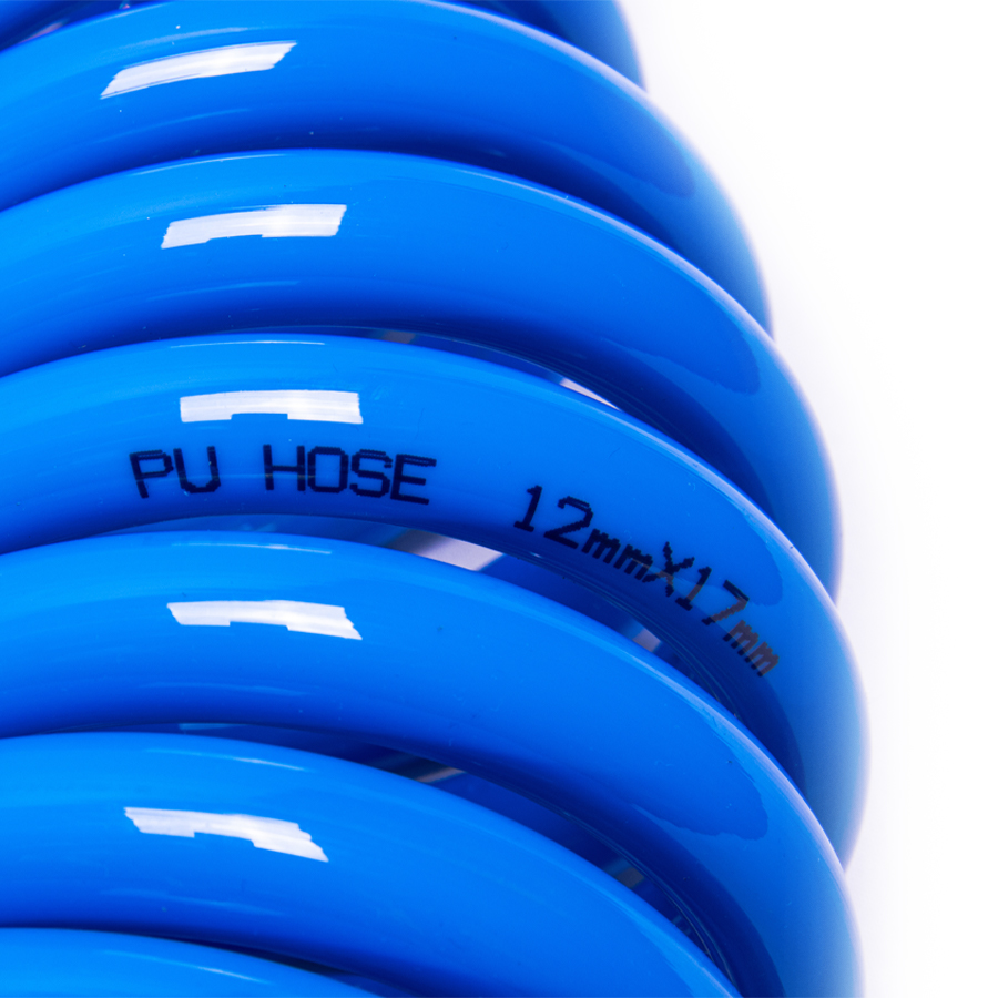 Шланг воздушный спиральный применяется для подачи воздуха от компрессора или линии сжатого воздуха к пневмоинструменту. За счет своей формы в виде спирали, шланг имеет достаточно компактный размер и не мешается под ногами.
