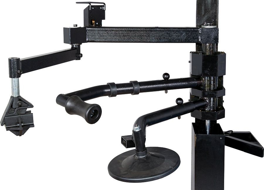 Третья рука (вспомогательное устройство) для работы с жесткими низкопрофильными шинами для станков - многофункциональное приспособление, которое предназначено для монтажа/демонтажа низко профильных, широких и жестких шин. Данная установка значительно ускоряет процесс бортировки.